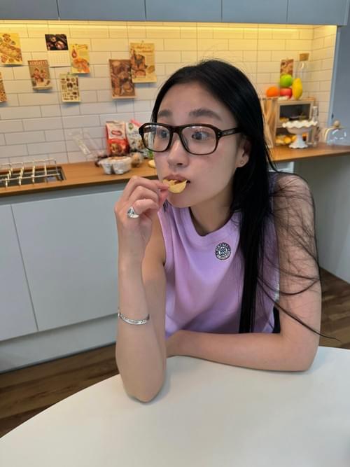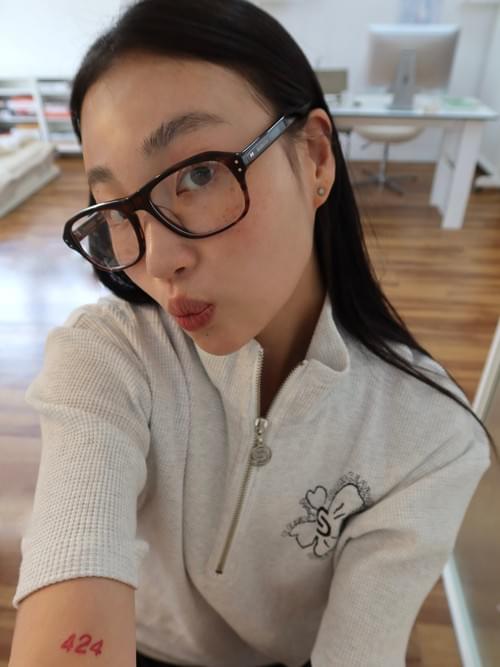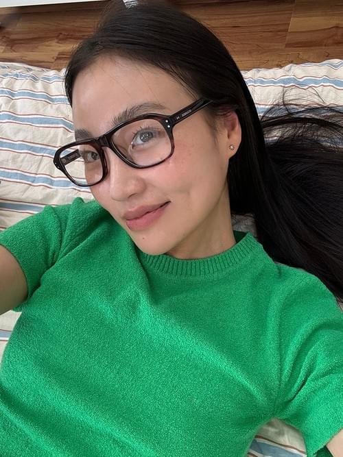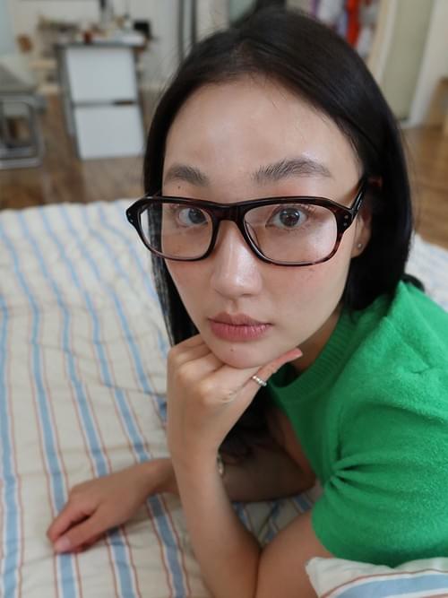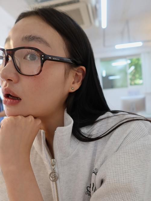 This demure frame is stocked with clear, blue light filtering lenses.