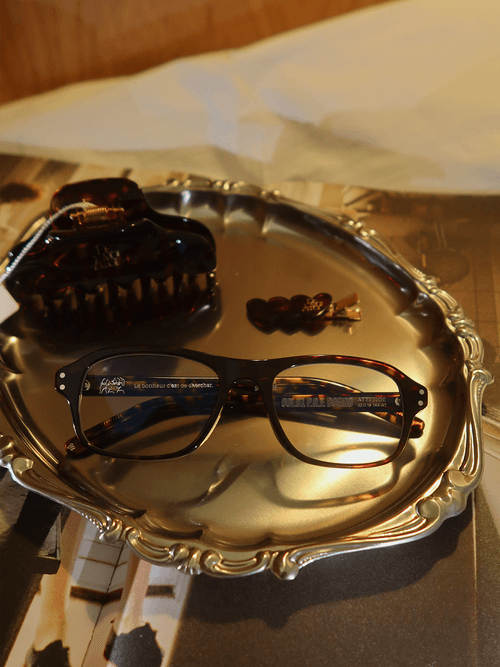 This frame comes fitted with clear, blue light filtering lenses.