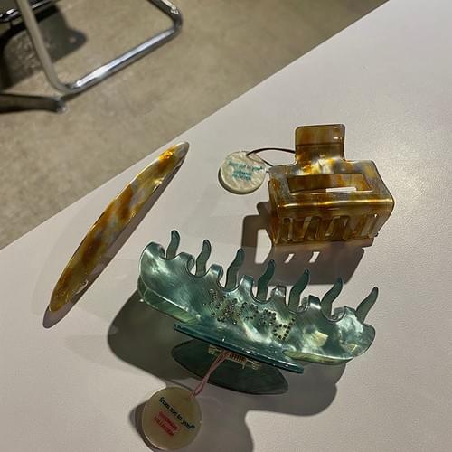 Stylish and unique hair accessories collection, based off diverse colors and inspired by nature. handmade with cellulose acetate, a natural and eco-friendly material. Using a lot of patterns featured in green, blue and brown that has strong associations with nature which will immediately bring the plants, sky, oceans, forests, animals even the earth or the universe to our minds.